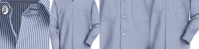 - Two-piece, lined, banded, button-down collar